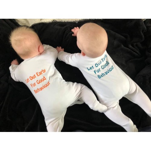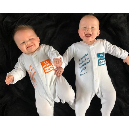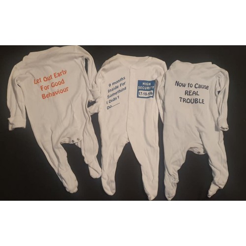 A great present to give some with a newborn - this personalize baby grow with the "High Security" number as the date of birth and a choice of backs.