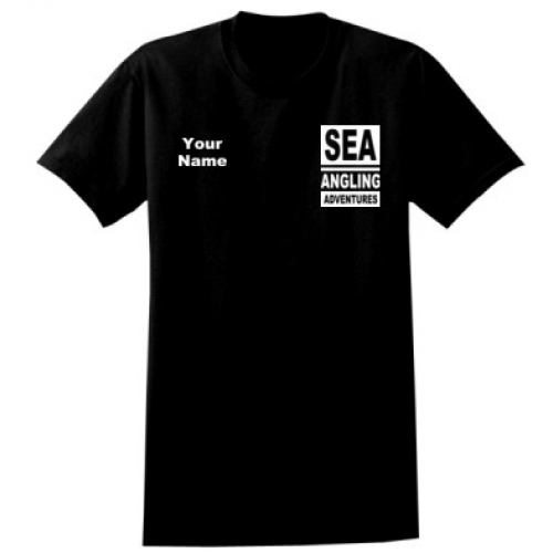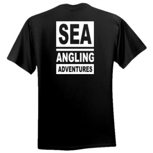 Black T-shirt with the Sea Angling Adventures on the front and back along with your own name on the front.